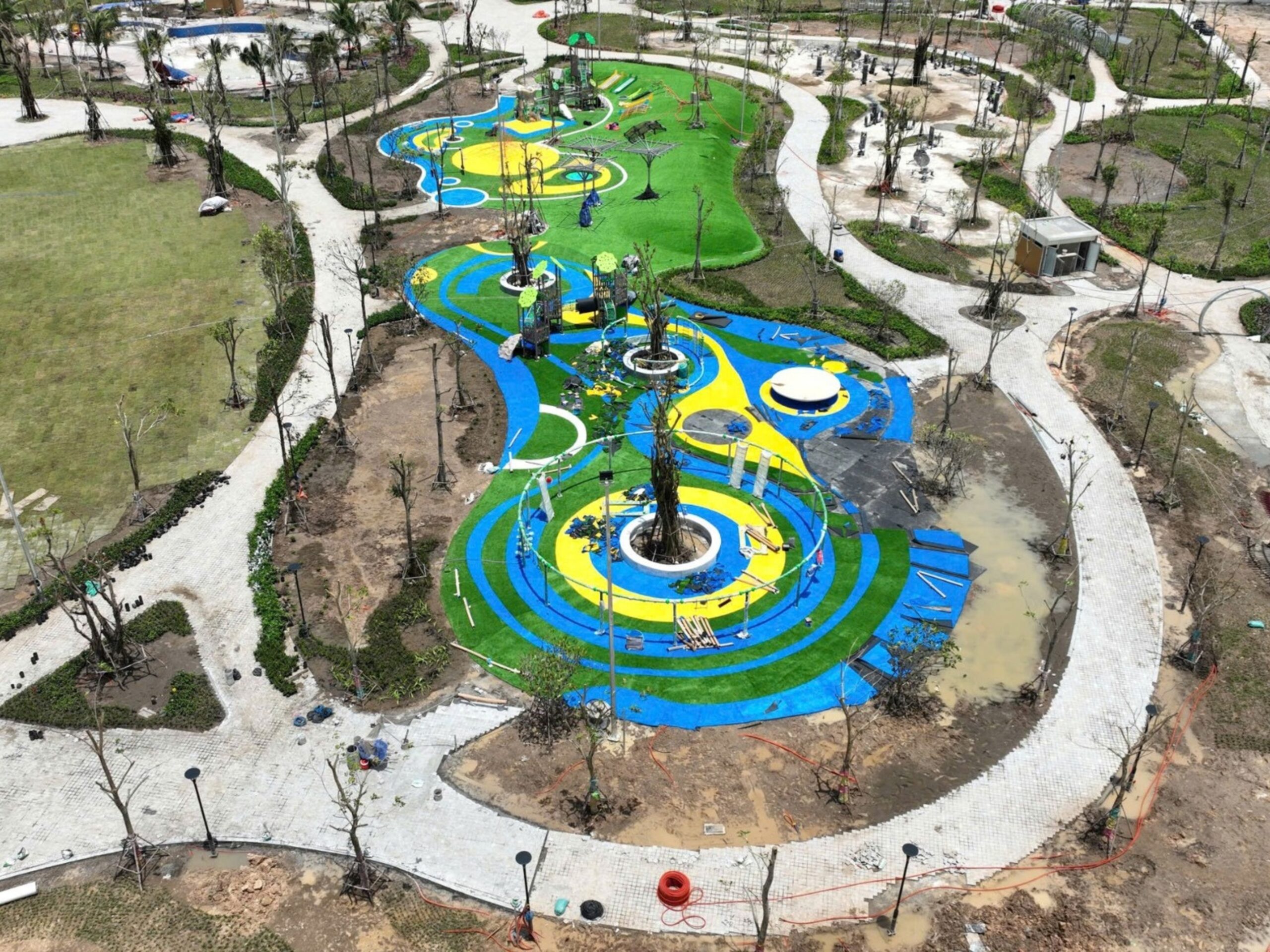 Những hàng cây, thảm cỏ và khuôn viên sinh hoạt cộng đồng đã phủ sắc xanh mát mắt. Không gian sống gần gũi thiên nhiên đang được kiến tạo, hứa hẹn mang đến trải nghiệm trong lành cho cư dân tương lai.