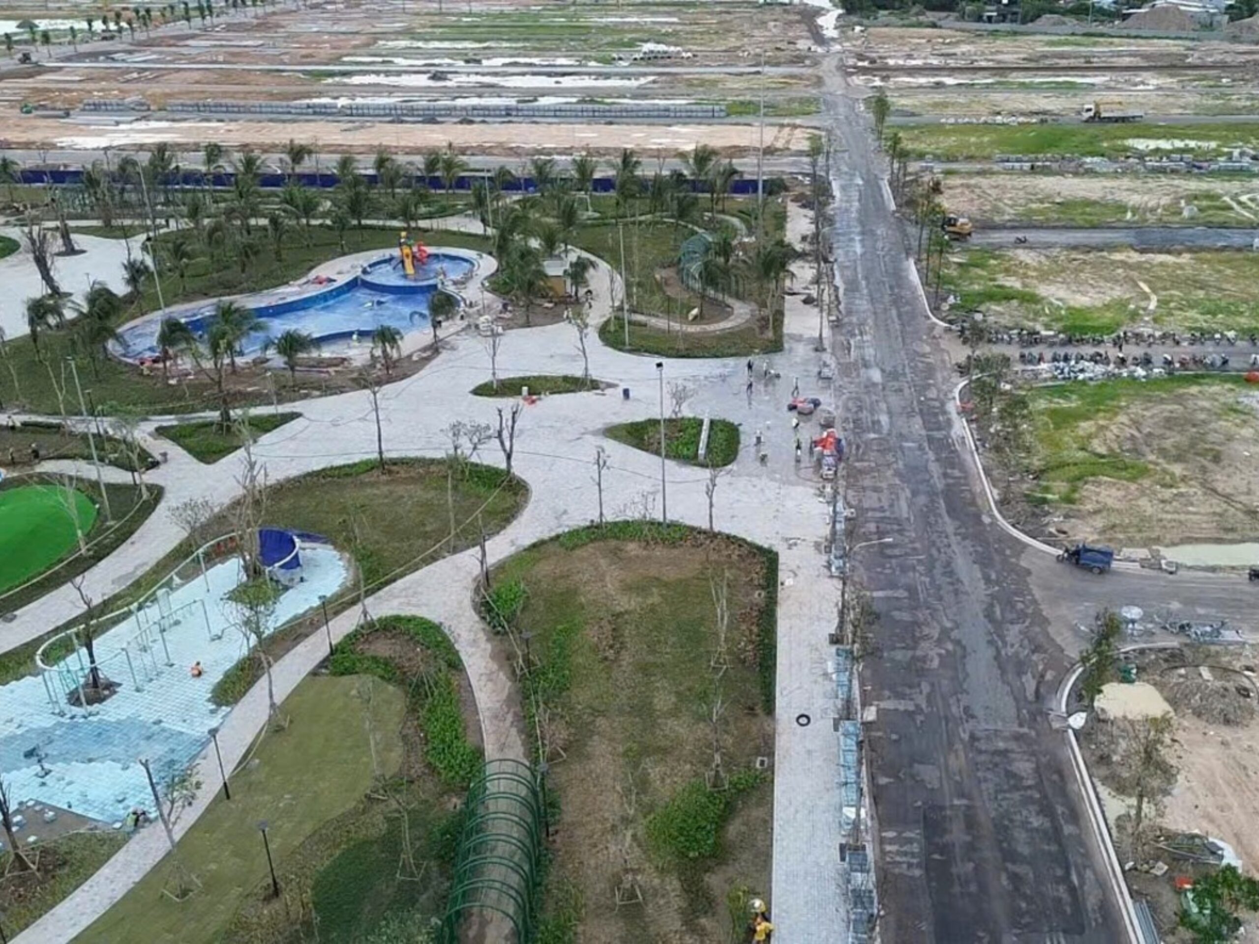 Đường trục xuyên tâm đã được thi công chỉnh chu, kết hợp hạ tầng cây xanh và vỉa hè rộng thoáng. Đây sẽ là mạch giao thông huyết mạch, kết nối toàn bộ dự án và khu vực xung quanh.